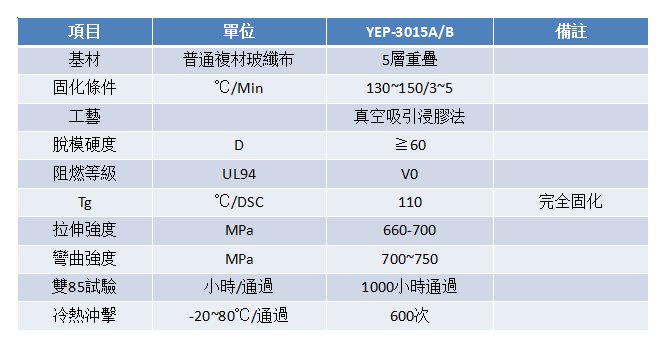 快速固化雙組份(fèn)體系:YEP-3015A/B=100/20(phr)